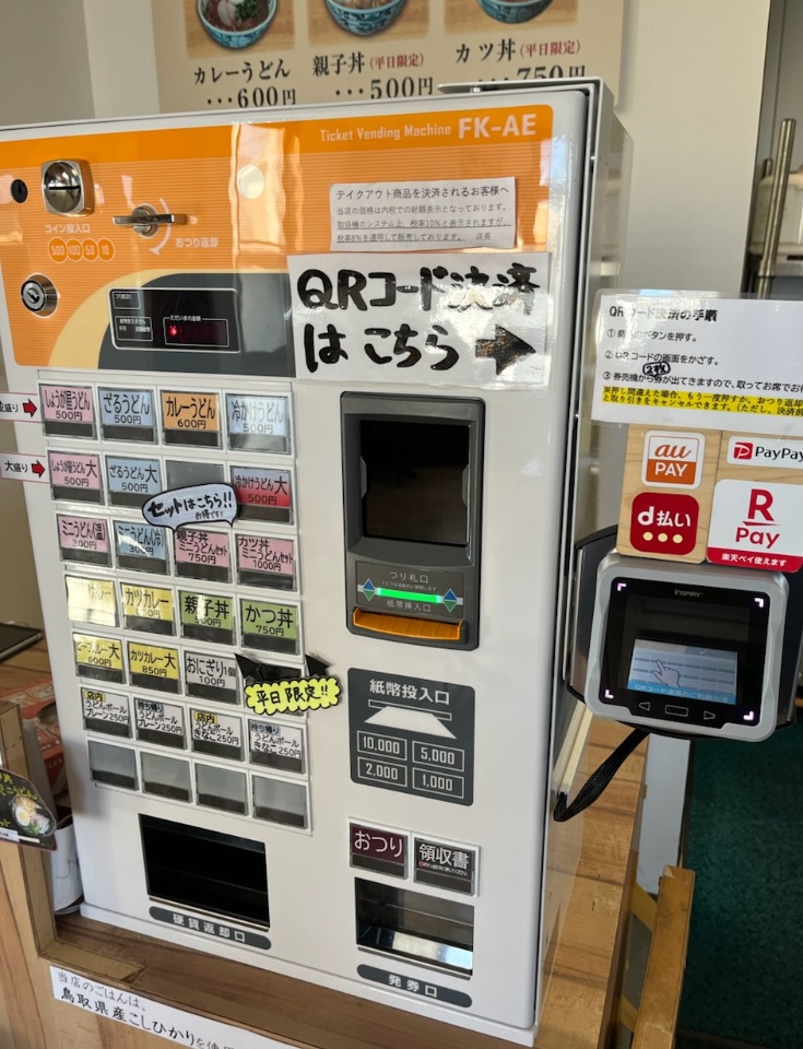 そこで、接客の内、金銭授受と注文を受ける工程を極力省力化する目的で、インボイス制度の登録番号付き領収書発行機能に加えキャッシュレス決済機能を付加した券売機を、障害者就労施設における生産活動の効率化に資するICT機器等の導入事業補助金を活用して、令和7年の秋に導入しました。